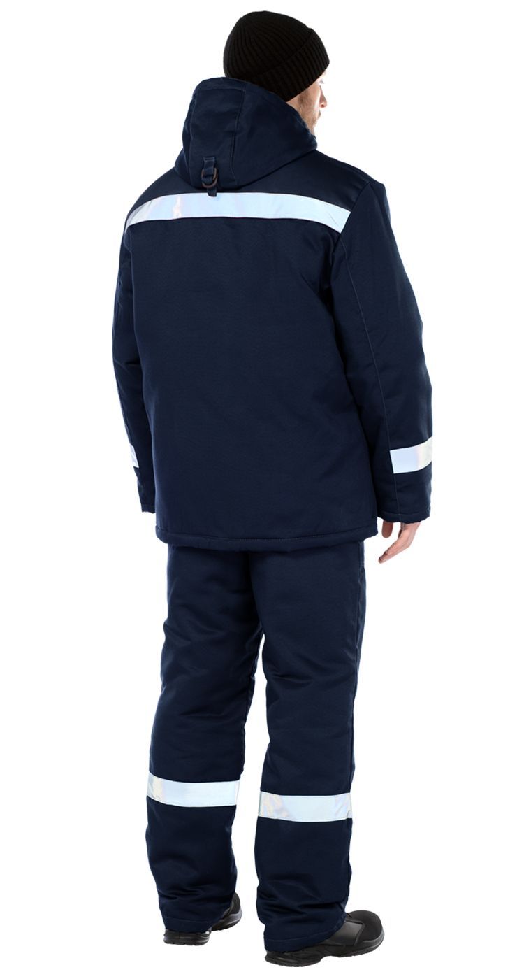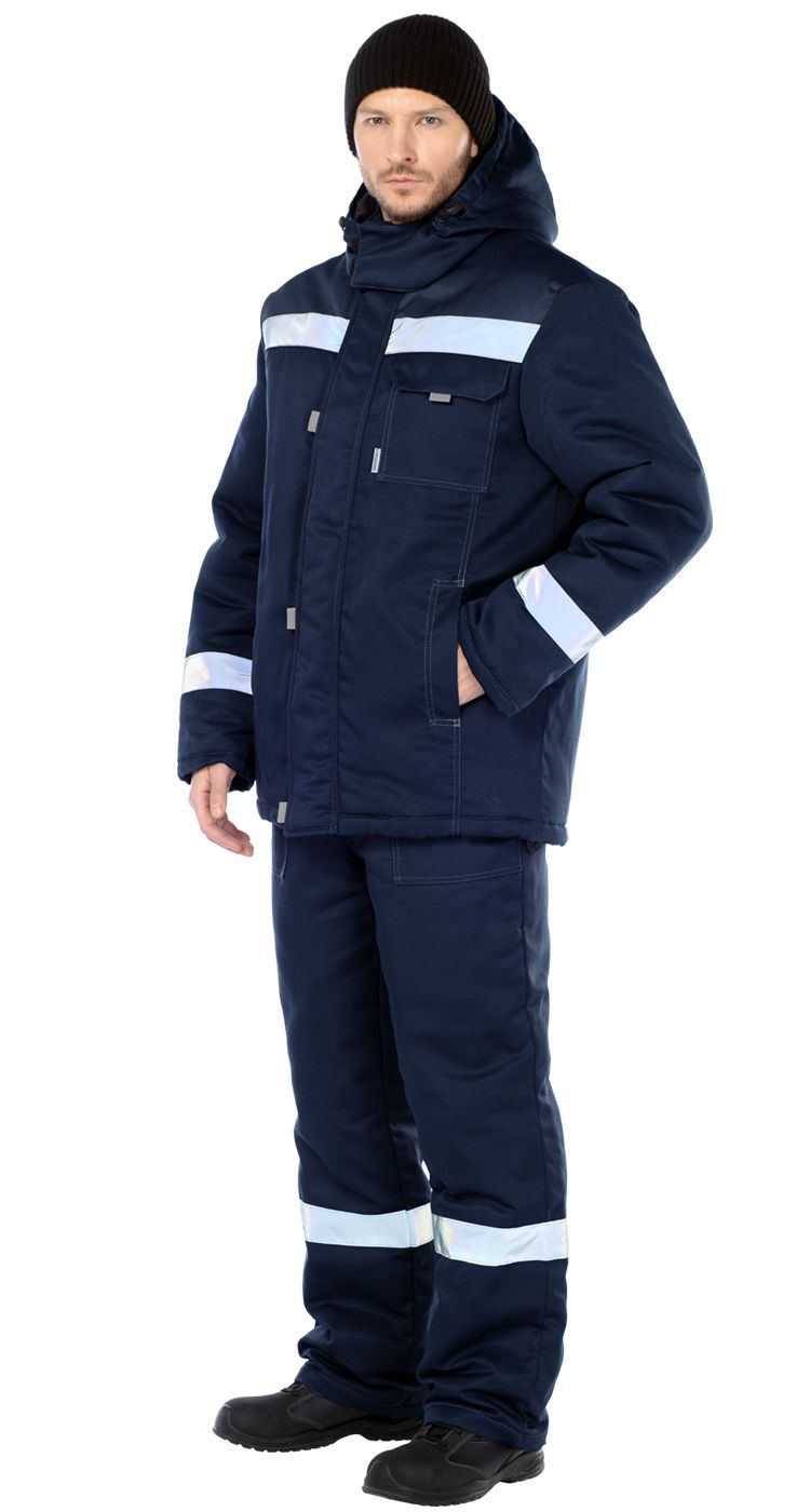 Ткань смесовая , пл.210 г/м.кв., ВО В куртке: - широкиесветовозвращающие полосы по низу кокеток, - супатная застежка на пуговицы, - кокетки из отделочной ткани, воротникотложной, - эластичная регулировка объема по низу куртки, - нагрудный карман на правой полочке с отделением для ручки, - накладные карманы в нижней части куртки, - широкиесветовозврающие полосы на рукавах