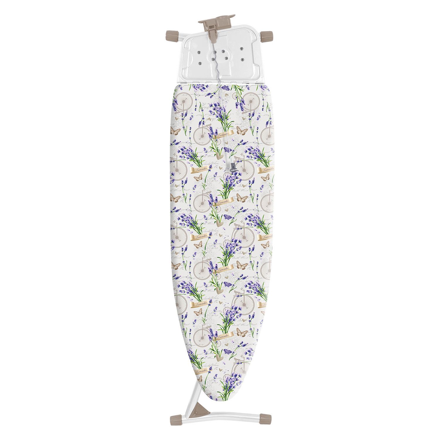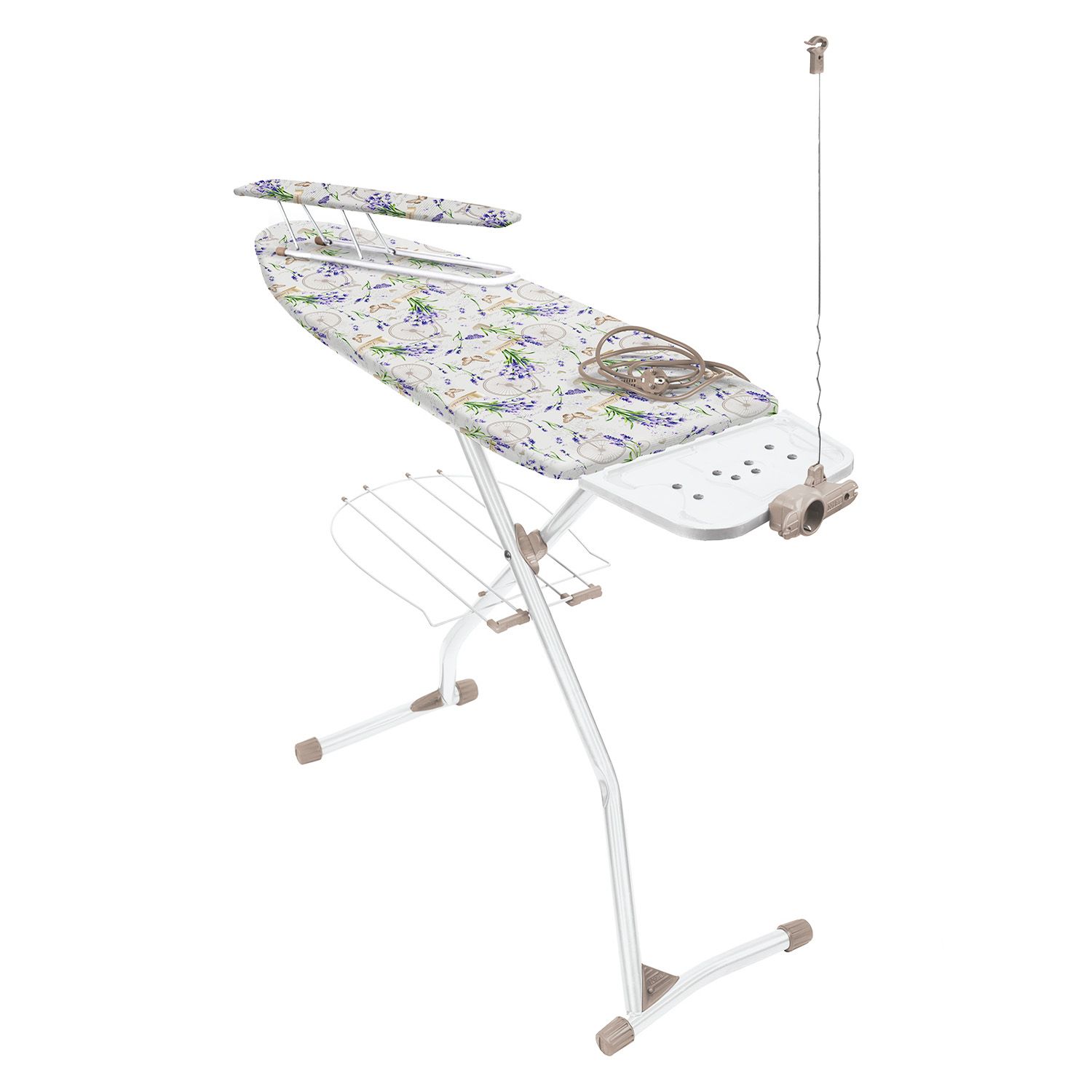 поверхность-металл (1220х400мм), регулируемая высота до 1м, EUROподставка под утюг с термосиликоном, переносной подрукавник, полка для белья, электросоединитель 1,9м, розетка с держателем для провода утюга, материал чехола-тефлон, max нагрузка на глад.поверхность 25кг, вес изделия-8,3кг. Размер упаковки 1630х415х200мм.