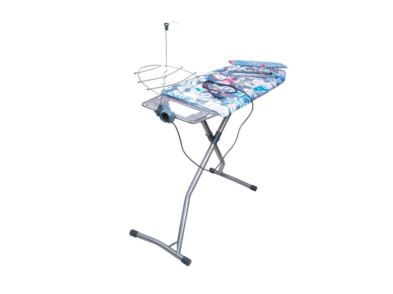 поверхность-металл (1220х400мм), плавно регулируемая высота до 1м, EUROподставка под утюг c термосиликоном, переносной подрукавник, полка для белья боковая откидная, электросоединитель 1,9м, розетка с держателем для провода утюга, материал чехола-хлопок, max нагрузка на глад.поверхность 25кг, вес изделия-8,12кг. Размер упаковки 1630х415х200мм