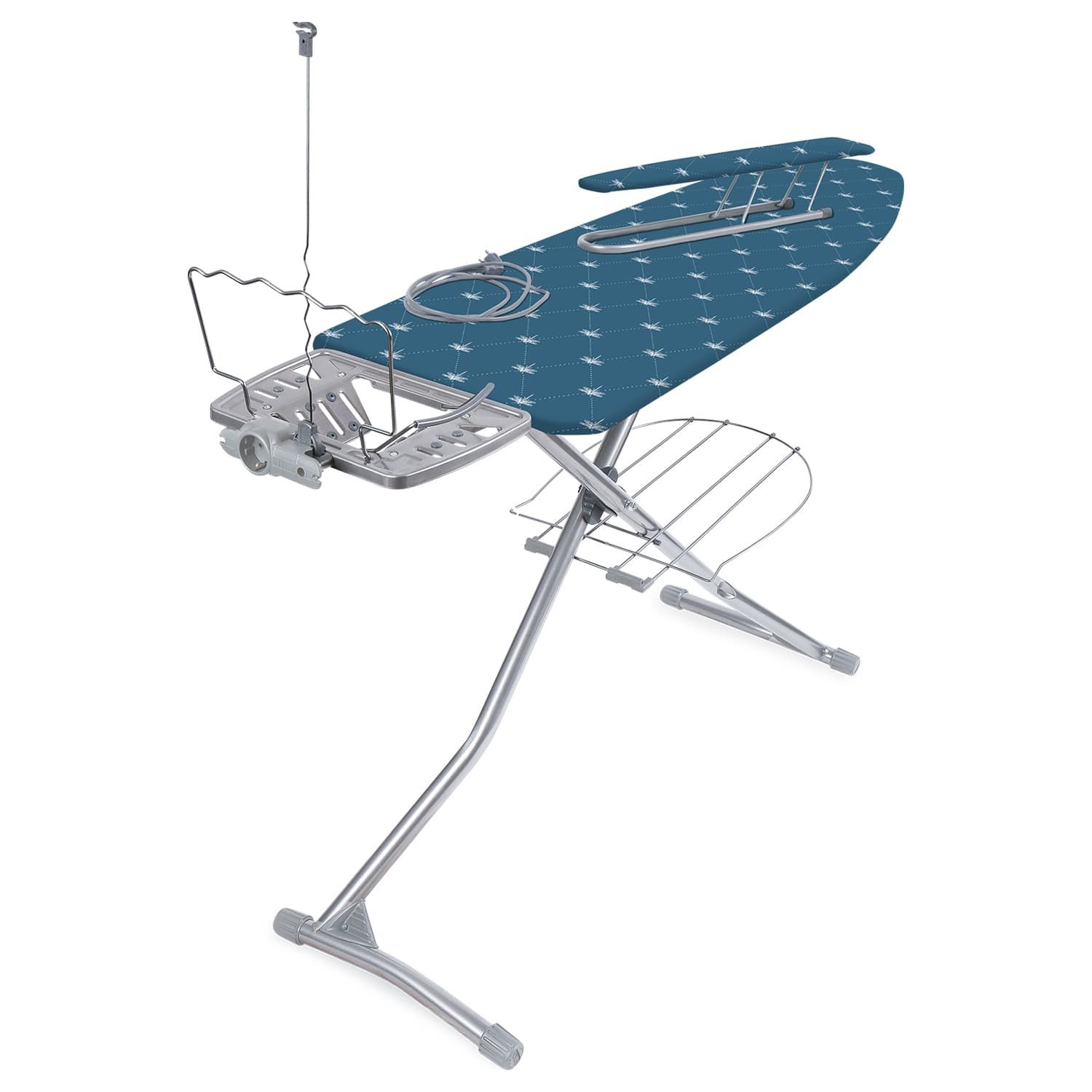Автоматический многоуровневый регулятор высоты до 1 м.Двухпозиционная EURO подставка под утюг с термостойкими силиконовым вставками, специально для утюгов с тефлоновым покрытием.Широкая гладильная поверхность позволяет гладить постельное белье и скатерти.
