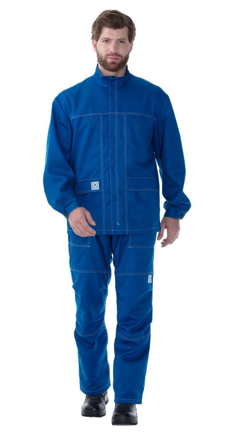 Костюм летний мужской для защиты от термических рисков электрической дуги с уровнем защиты до 12 кал/см², ОПЗ и механических воздействий (истирания) из термостойкой антиэлектростатической ткани Термол®220 МВО с маслонефтеводоотталкивающей отделкой (куртка, полукомбинезон), мод. Т/л-2 ЭНЕРГО Профи 220