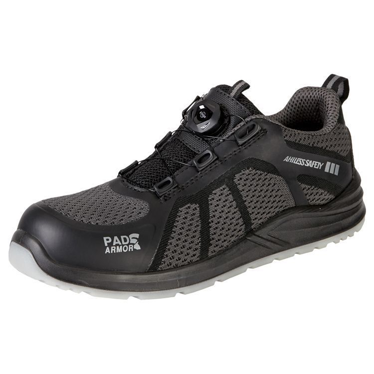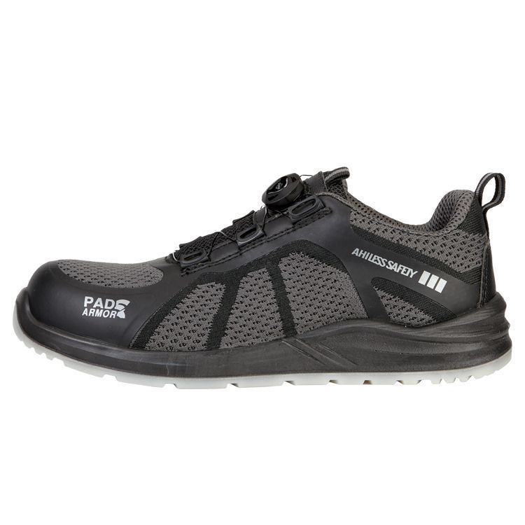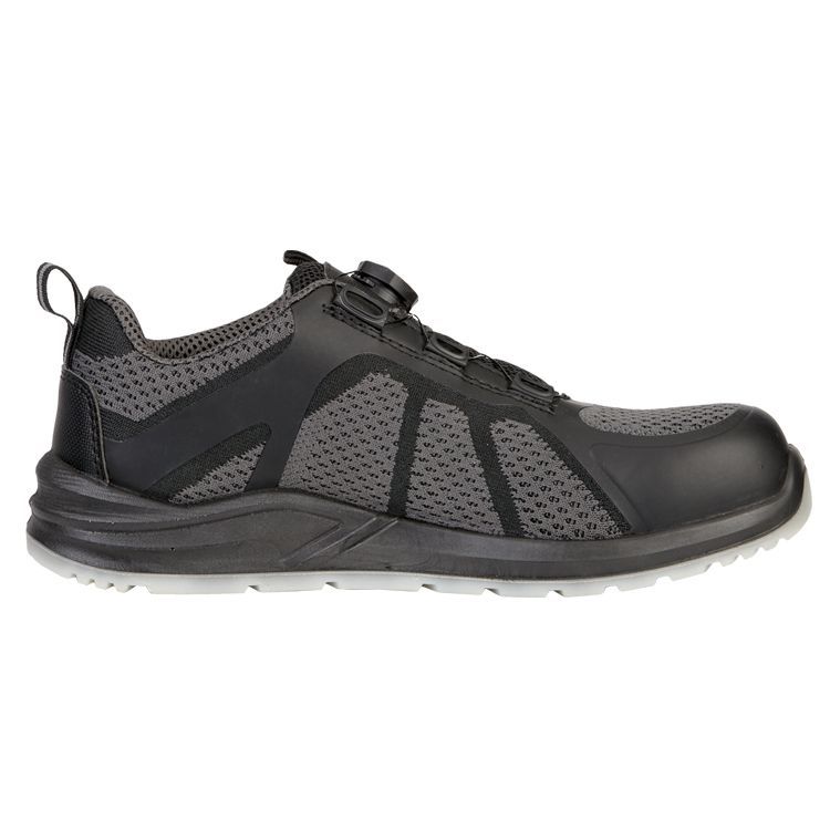Верх: трикотаж, ТПУ плёнка, синтетическая кожа Система быстрой шнуровки: роликхраповик (пластик, металл), трос с покрытием (металл), направляющие (пластик) Подкладка: трикотаж (100% полиэфир) Подносок: поликарбонат (200 Дж) Подошва: ПУ/ПУ Цвет: серый